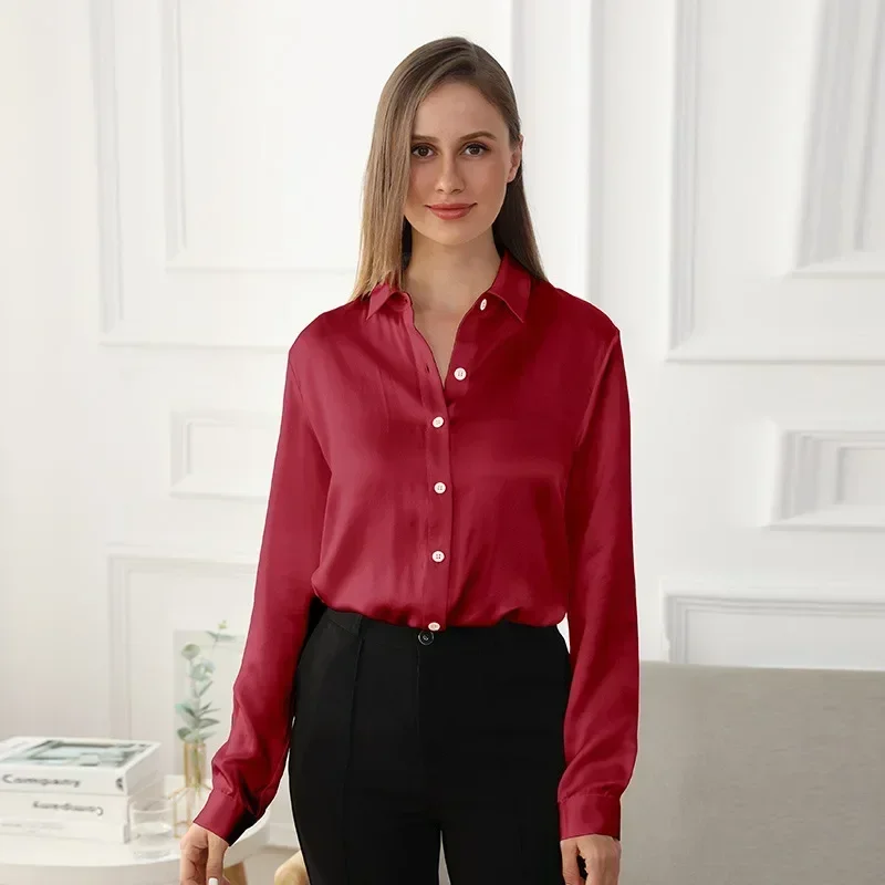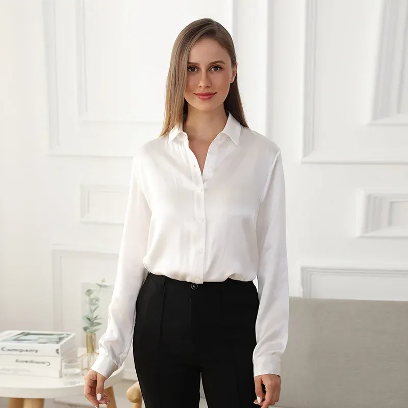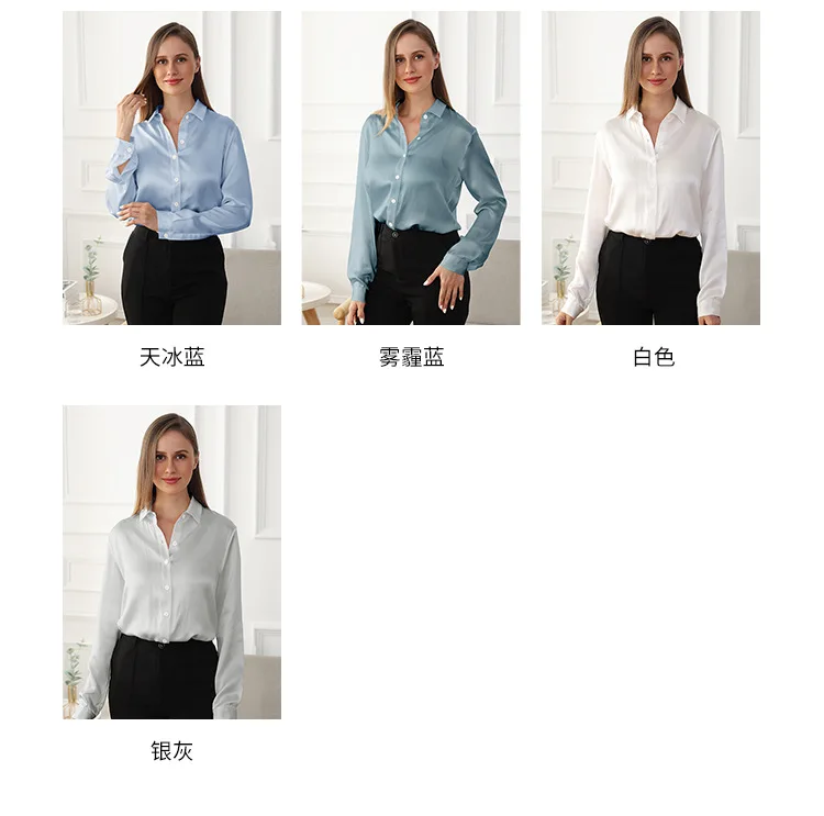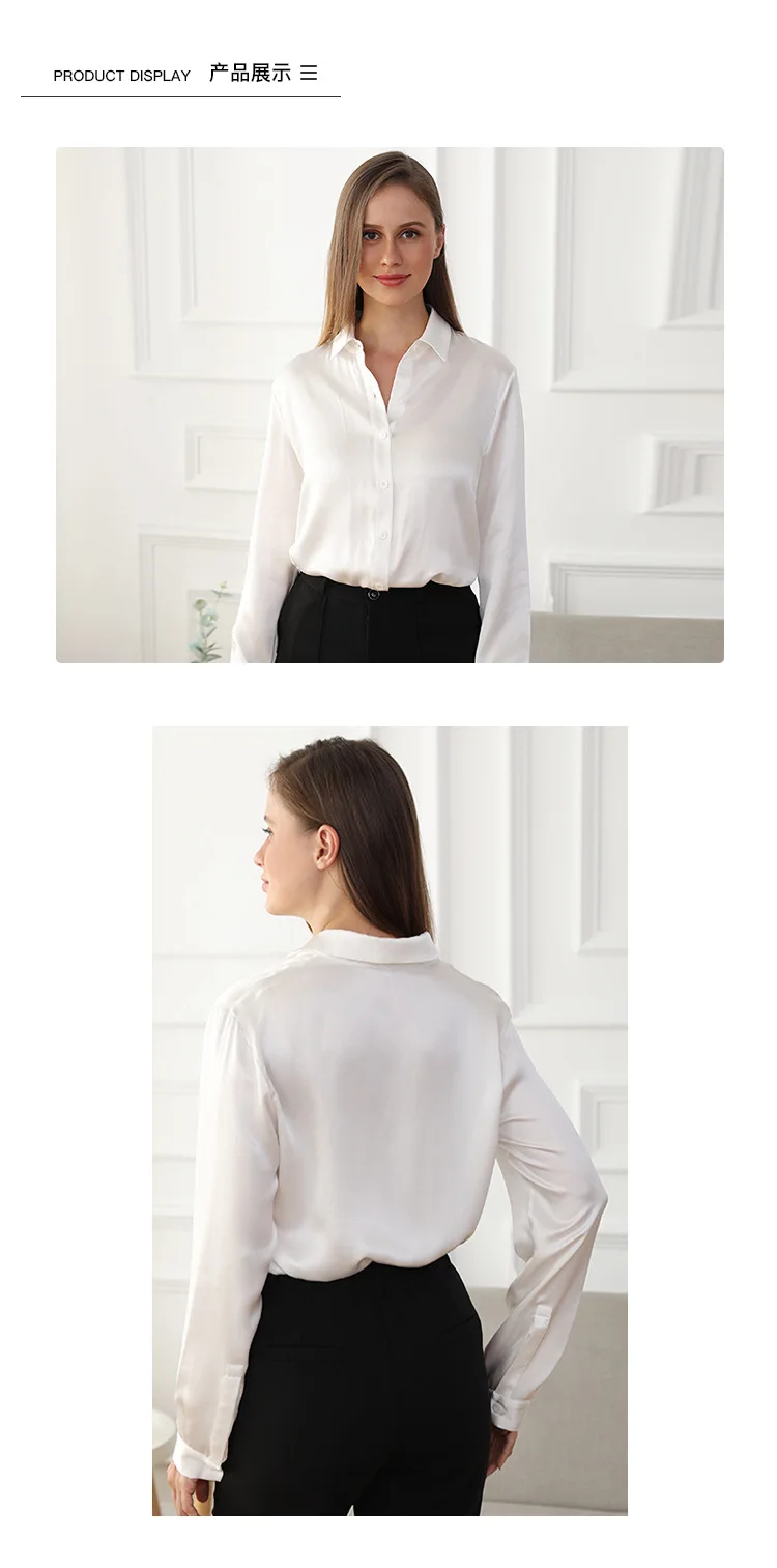 whether full opening: No High-concerned chemical: None Craft of Weaving: Tatting Release Date: Autumn 2023 Clothing Patterns: Straight Season: All Season Fabric content: 91% (inclusive) – 95% (inclusive) Material Composition: Natural Fiber Occasion: Home Closure Type: Single Breasted Age: Middle Age Thickness: Standard Shirts Type: Casual Shirts Place Of Origin: China (mainland) Sleeve Style: regular Gender: Women Clothing Length: regular Pattern Type: Solid Fabric Type: Satin Style: Office Lady Material: Silk Decoration: None Sleeve Length(cm): Full Collar: Turn-Down Collar […]